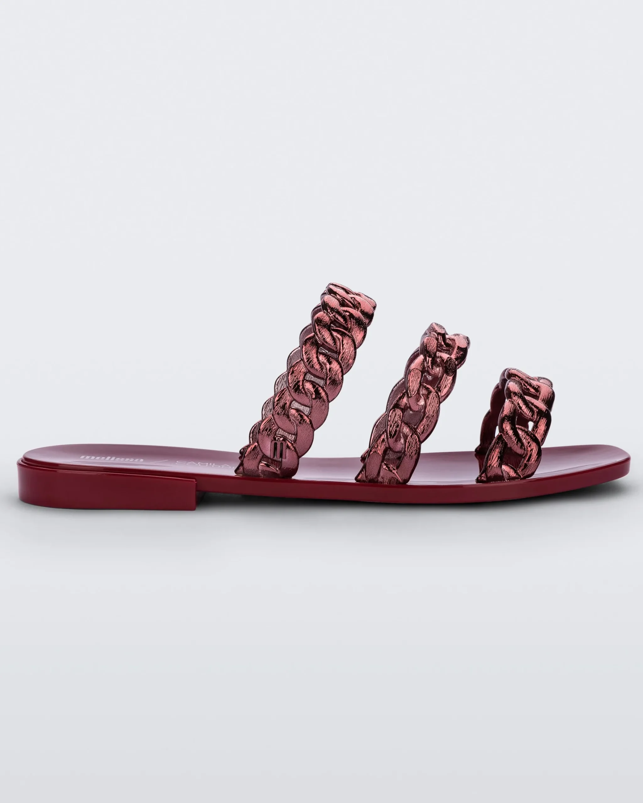 Melissa has collaborated with Brazilian influencer Camila Coutinho to create a flat slide that is edgy, shiny, and Instagram-worthy. The Melissa Feel has a thin sole with a small heel and three straps that form its upper, all made in a shape that resembles chains. Team it with one of this season’s jumbo chain bags and you will be ready for a selfie!
