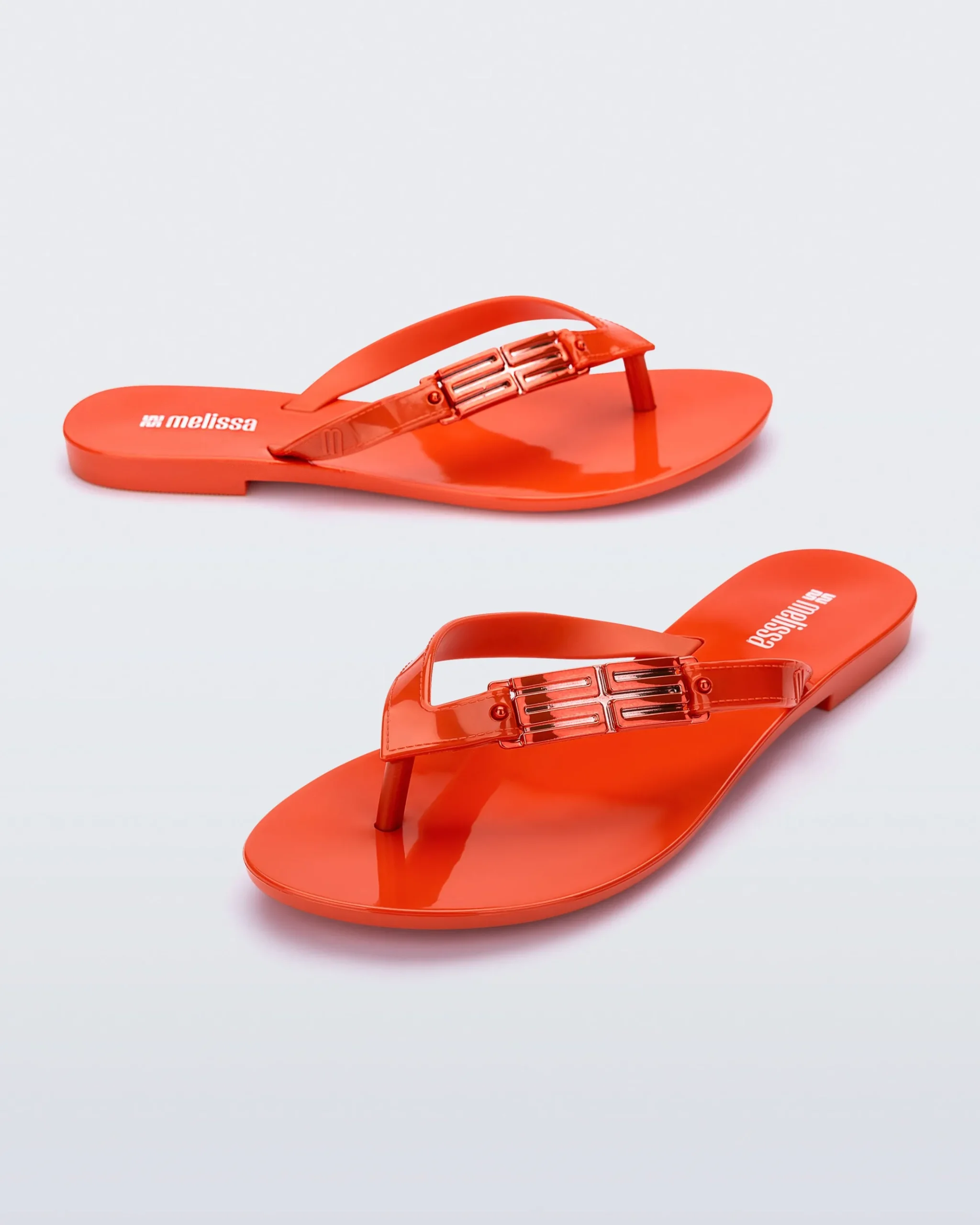 The Melissa Harmonic M Chic Flip adds a touch of elegance to a simple flip silhouette. Metallic “M” appliqués give a hint of personality while the Melflex base adds flexible comfort.