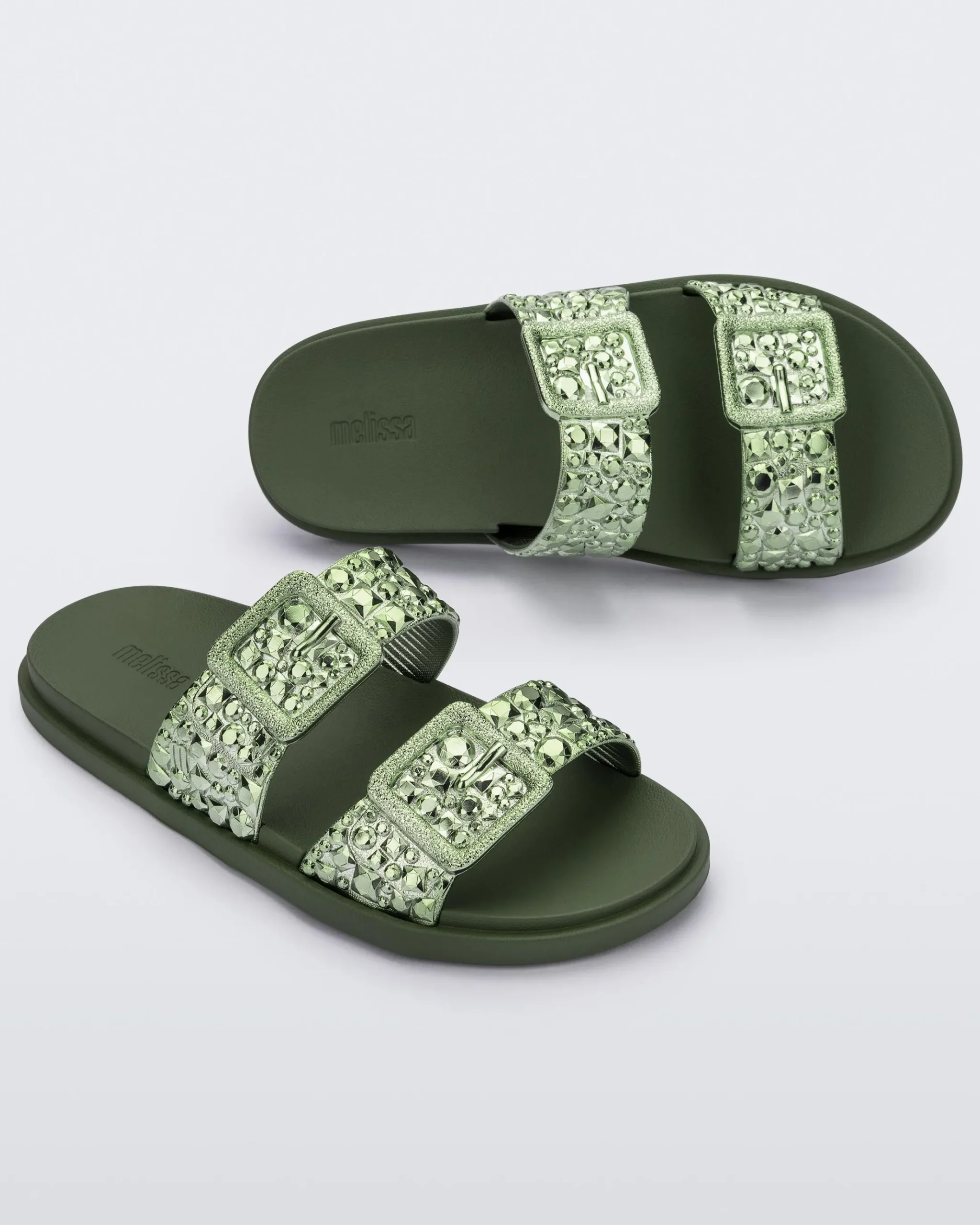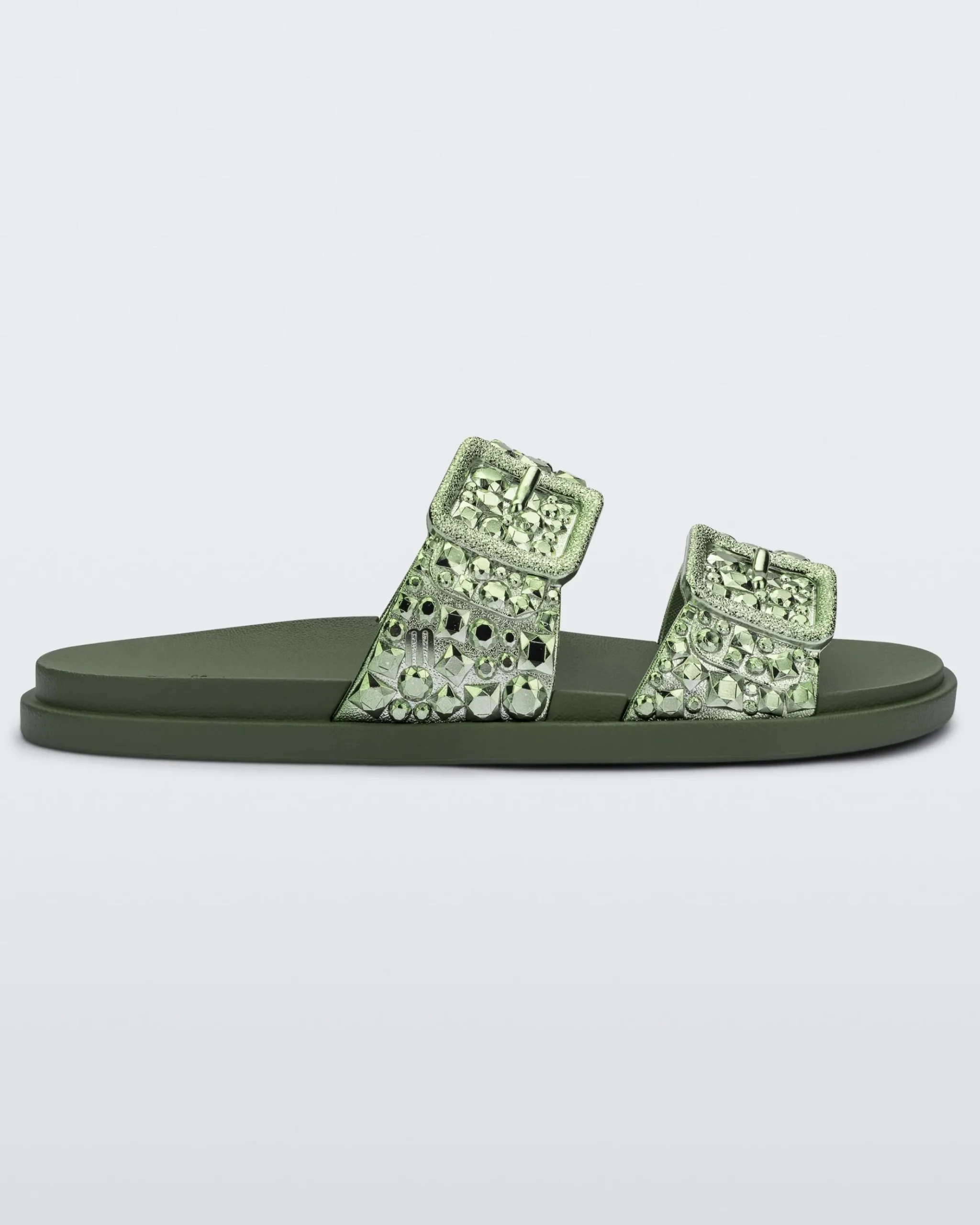 Get ready to dazzle with the Melissa Lust Slide. This fashion-forward slide sandal boasts a beautiful chrome upper. The expanded outsole ensures ultra-lightweight comfort and the buckles add a touch of edge to this dazzling design. Because who says casual can’t be captivating?