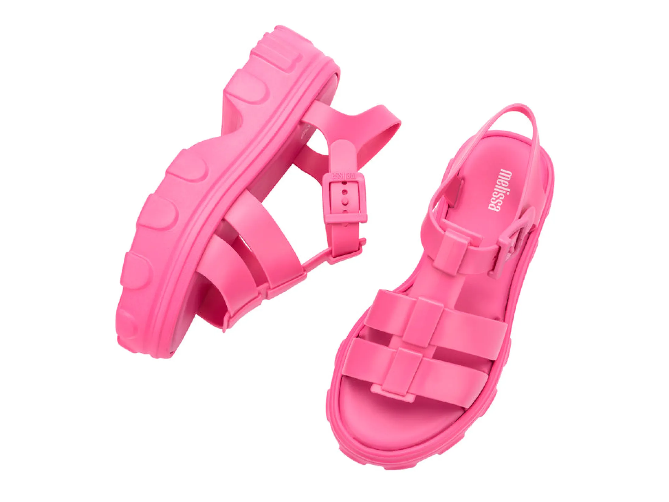 Introducing another stand-out model in the Melissa Universe. Meet the Ella, a chunky sandal with a robust and textured sole in the streetwear style found all over the catwalks. A fisherman style upper and light-as-air insole give this sandal a double-pinch of originality and creativity.