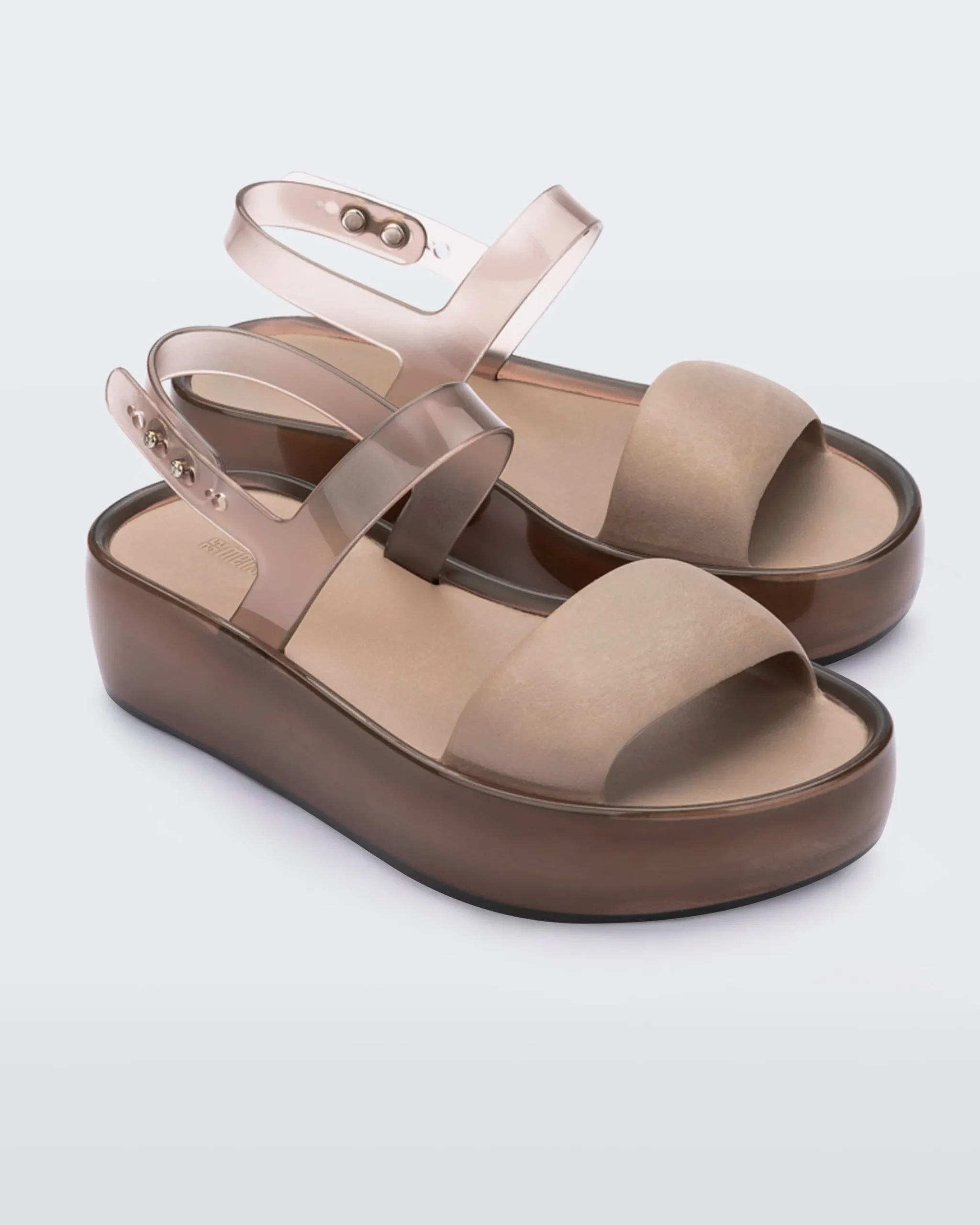 The Melissa Float Platform is your new favorite two-strap sandal. With a stylish mix of translucent jelly shine and solid matte finishes, the textural contrasts keep this platform visually interesting while a blend of PVC and EVA make it unbelievably comfortable.