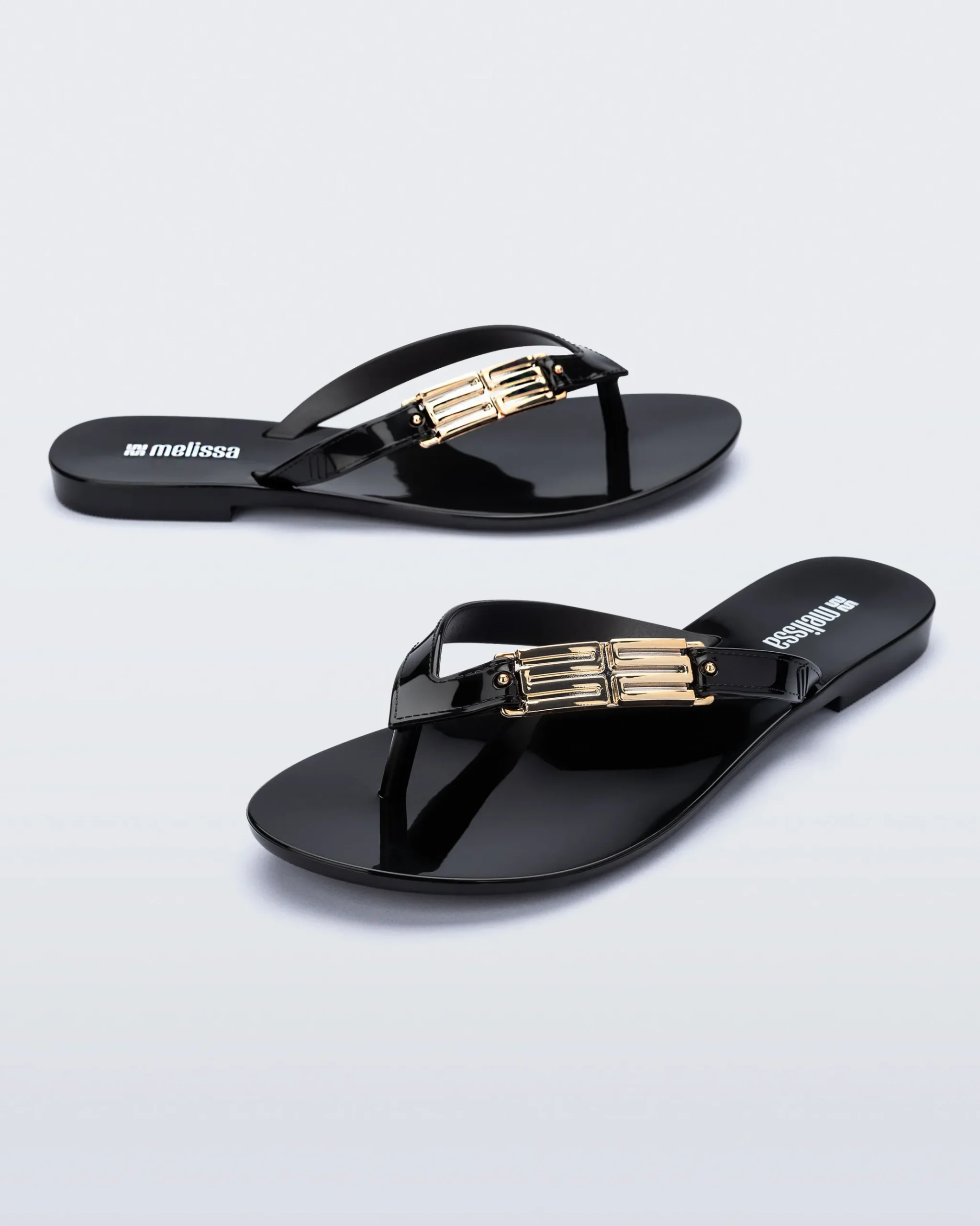 The Melissa Harmonic M Chic Flip adds a touch of elegance to a simple flip silhouette. Metallic “M” appliqués give a hint of personality while the Melflex base adds flexible comfort.