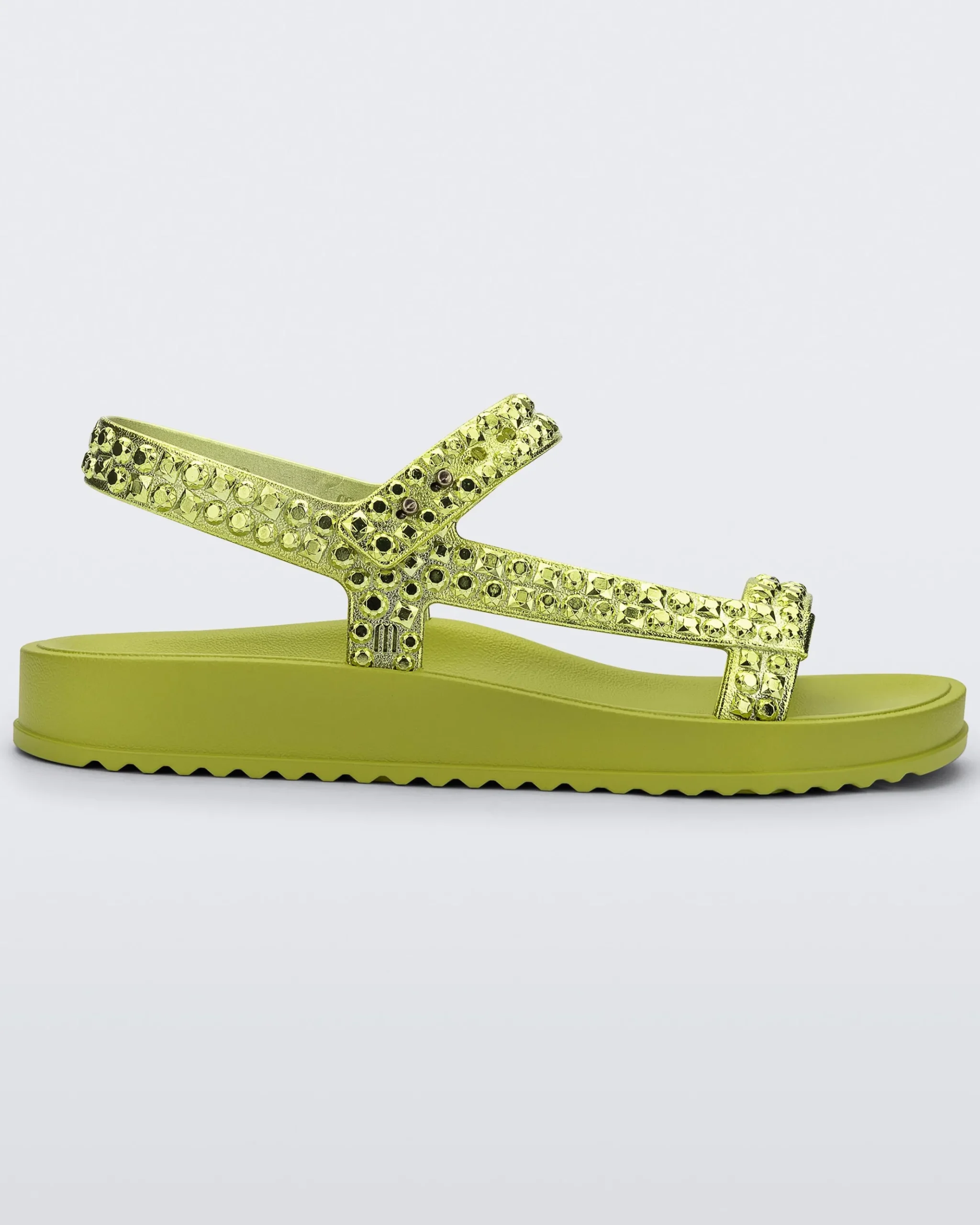 Step out and shine on with the Melissa Lust, the latest papete style that combines unapologetic glamour with unparalleled comfort. The chrome upper sparkles with a stone effect, and its ultra-lightweight design and adjustable metal pin closure ensures comfort and security, so you can glow all day long.