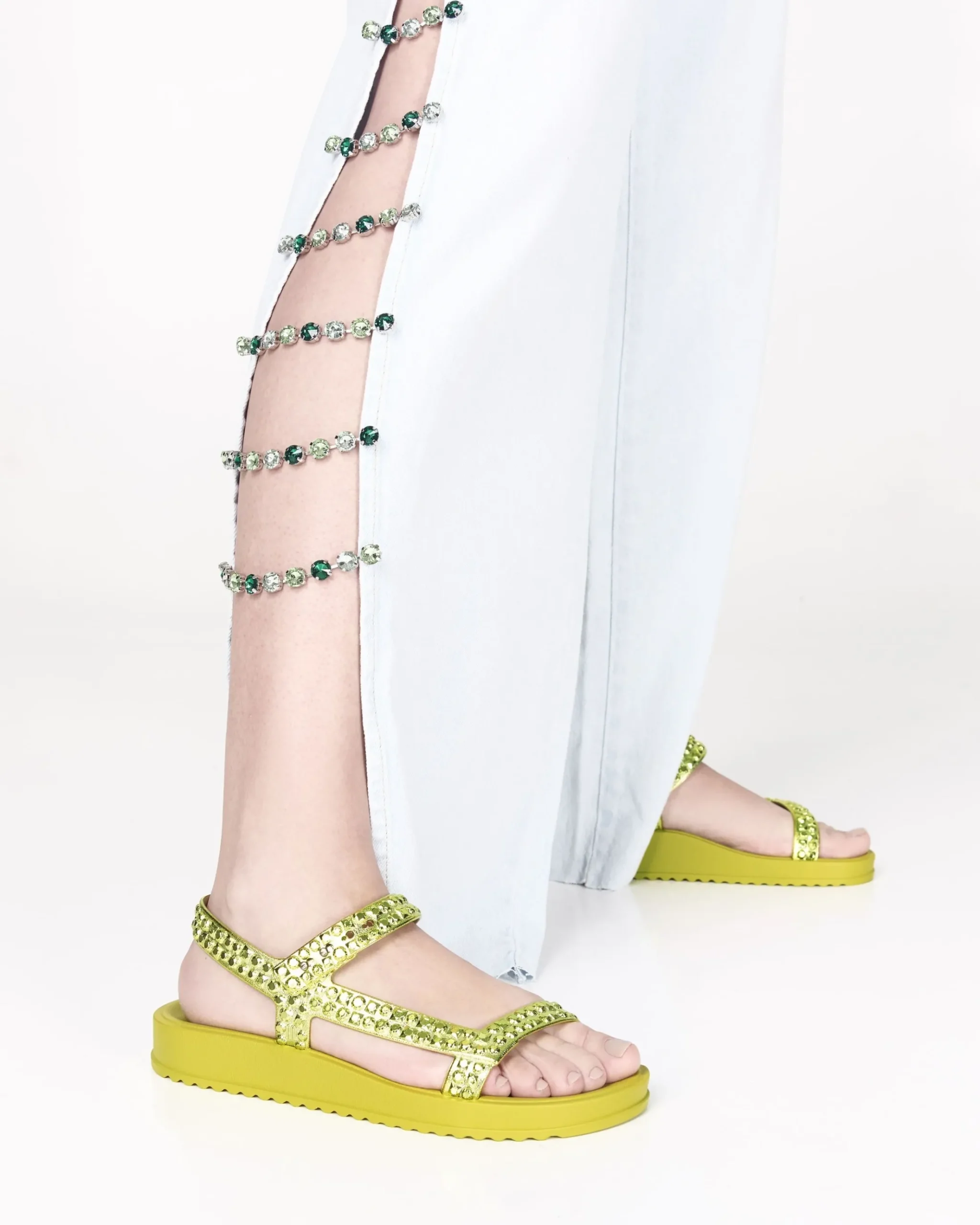 - Chrome upper with sparkly stone effect