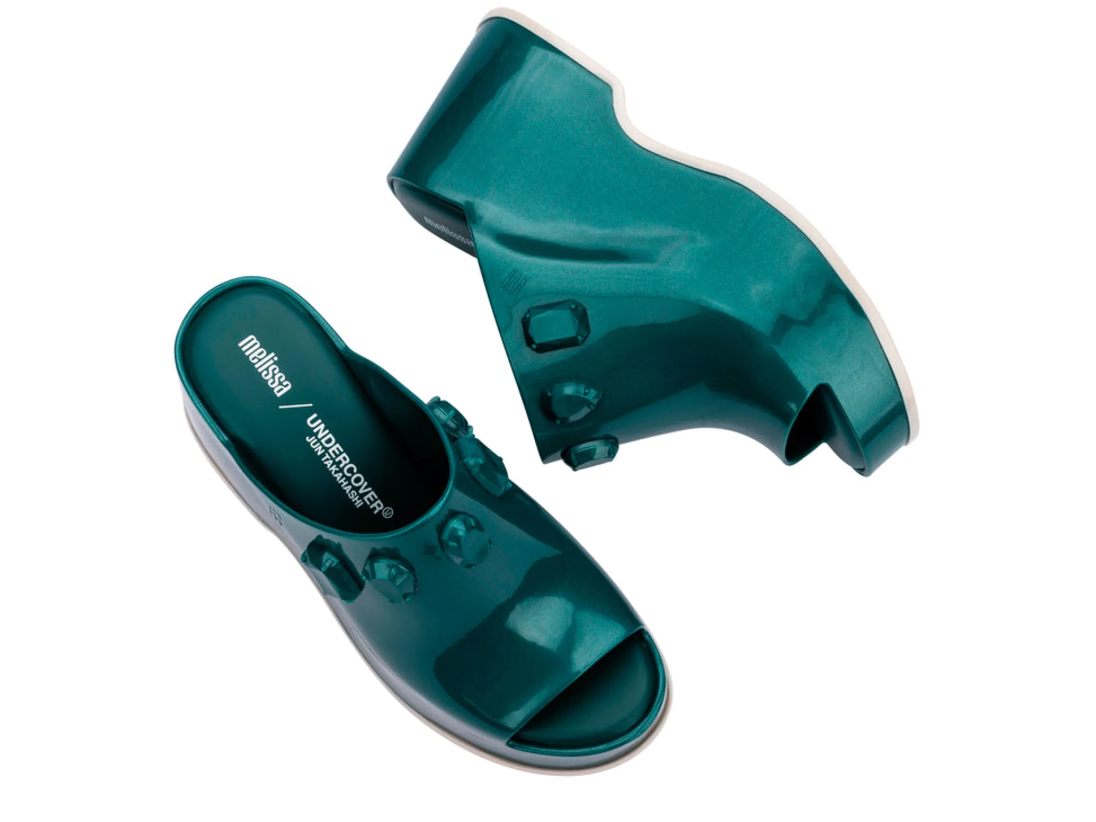 The Melissa + UNDERCOVER collaboration redefines modern style with the Patty Stones punk-inspired mule. The Patty Stones boasts intricate, jewel-like embellishments for a fashionable spin on the Patty mule, complemented by an ultra-lightweight, contrasting sole for all day comfort that stands out in a crowd.