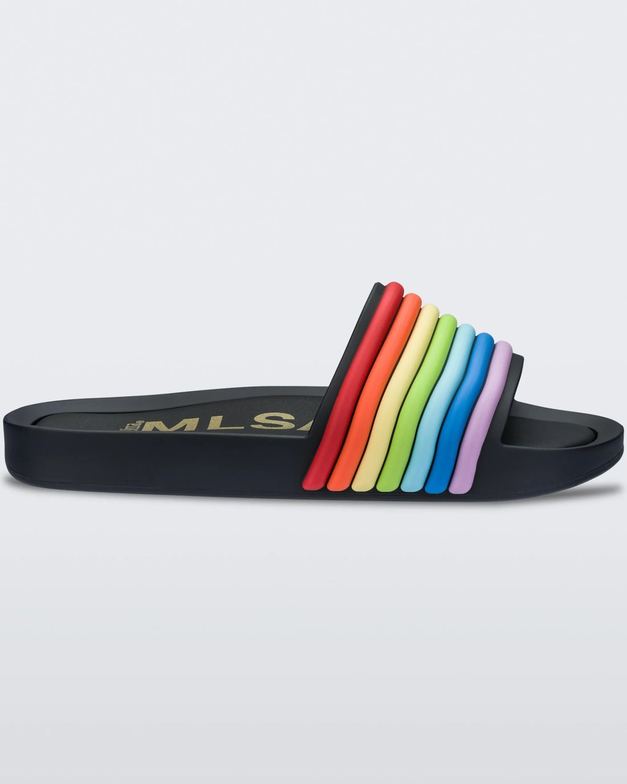 One of Melissa’s iconic archetypes and best-sellers, the Melissa Beach Slide, resurfaces in its Rainbow edition to celebrate Pride.