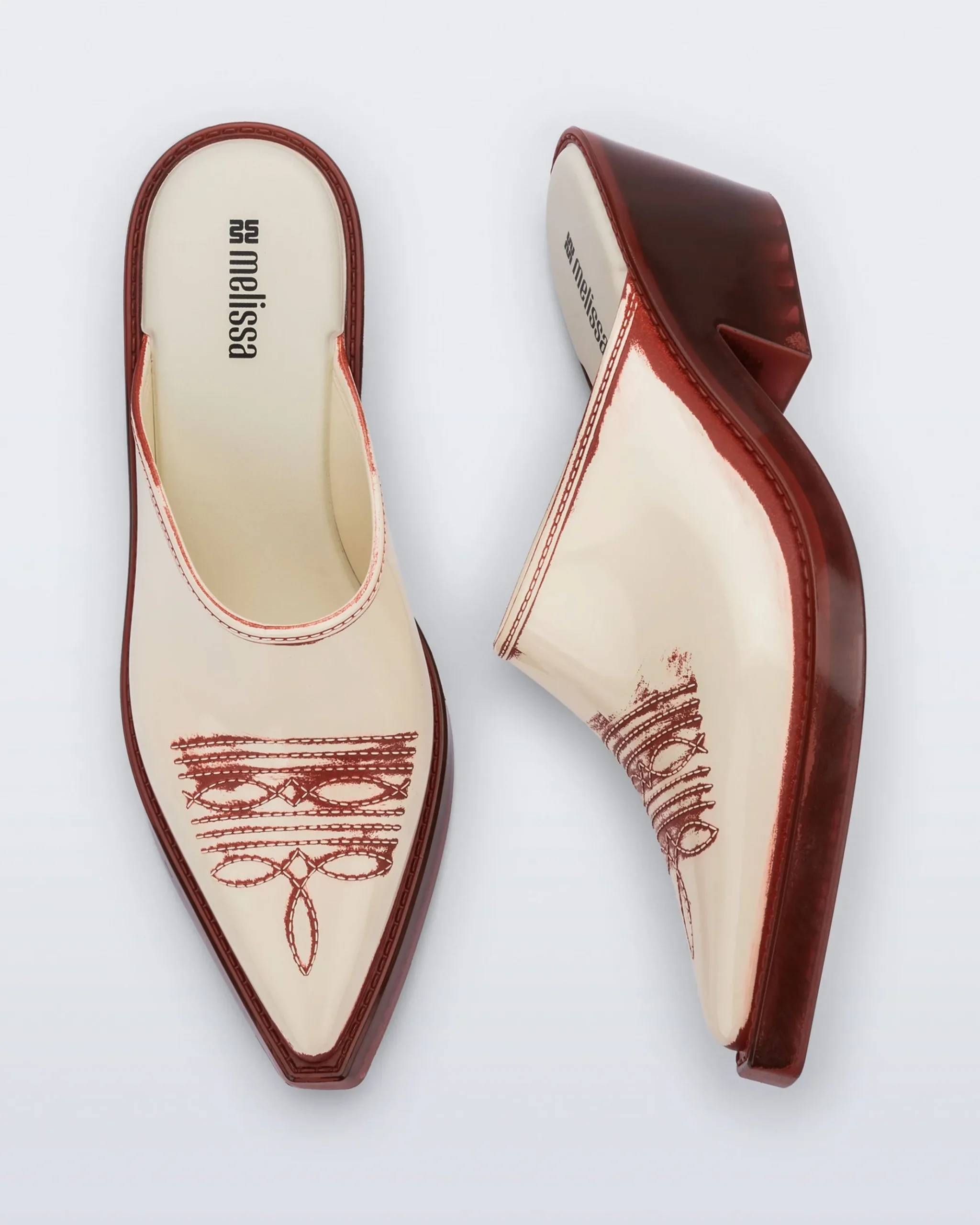 Giddy up. The Texas Mule takes another western style and reinvents it in classic Melissa fashion. With a modern color palette and stitching effects on the upper, this irreverent design appeals to any cowboy or cowgirl ready for the rodeo or the festival.